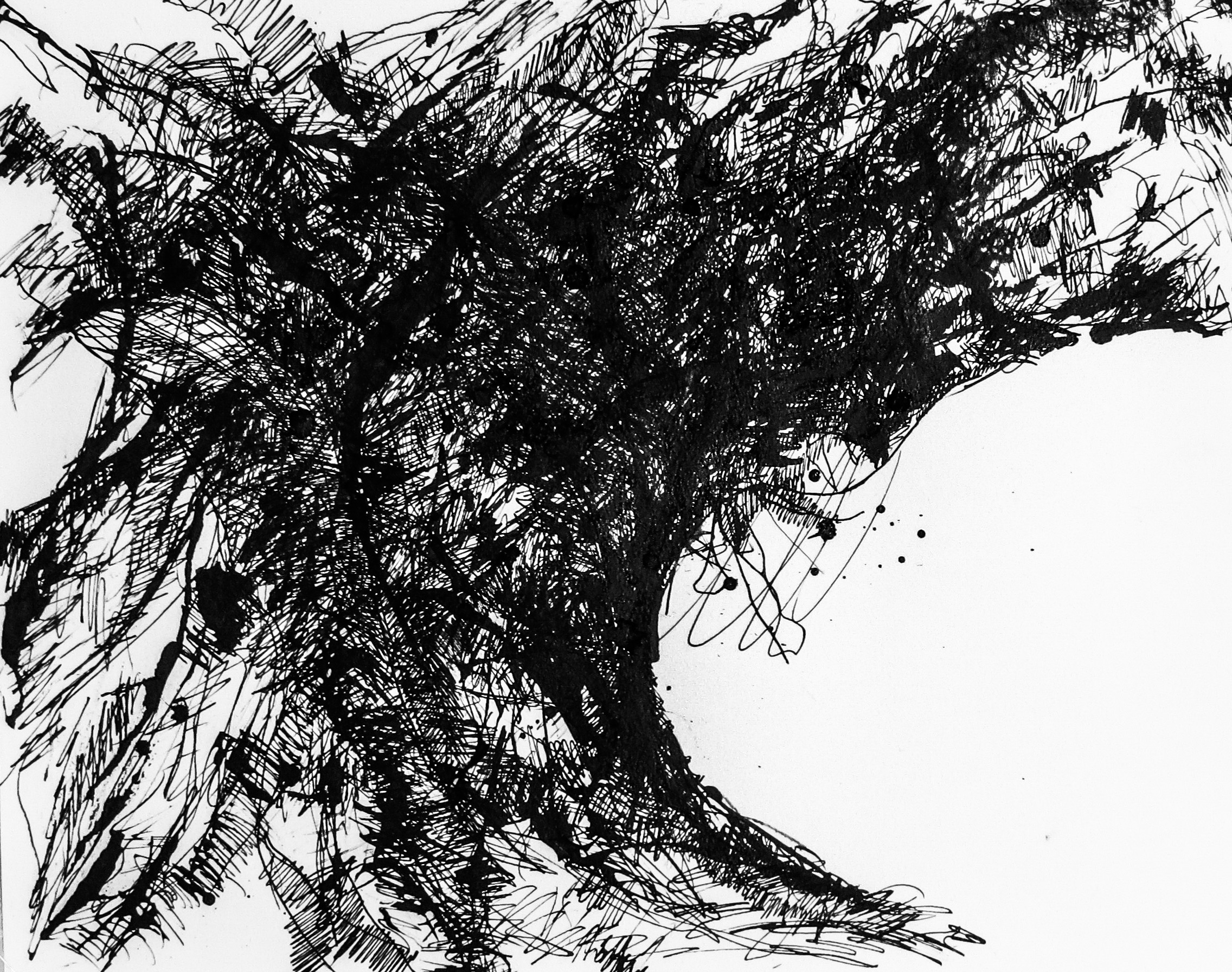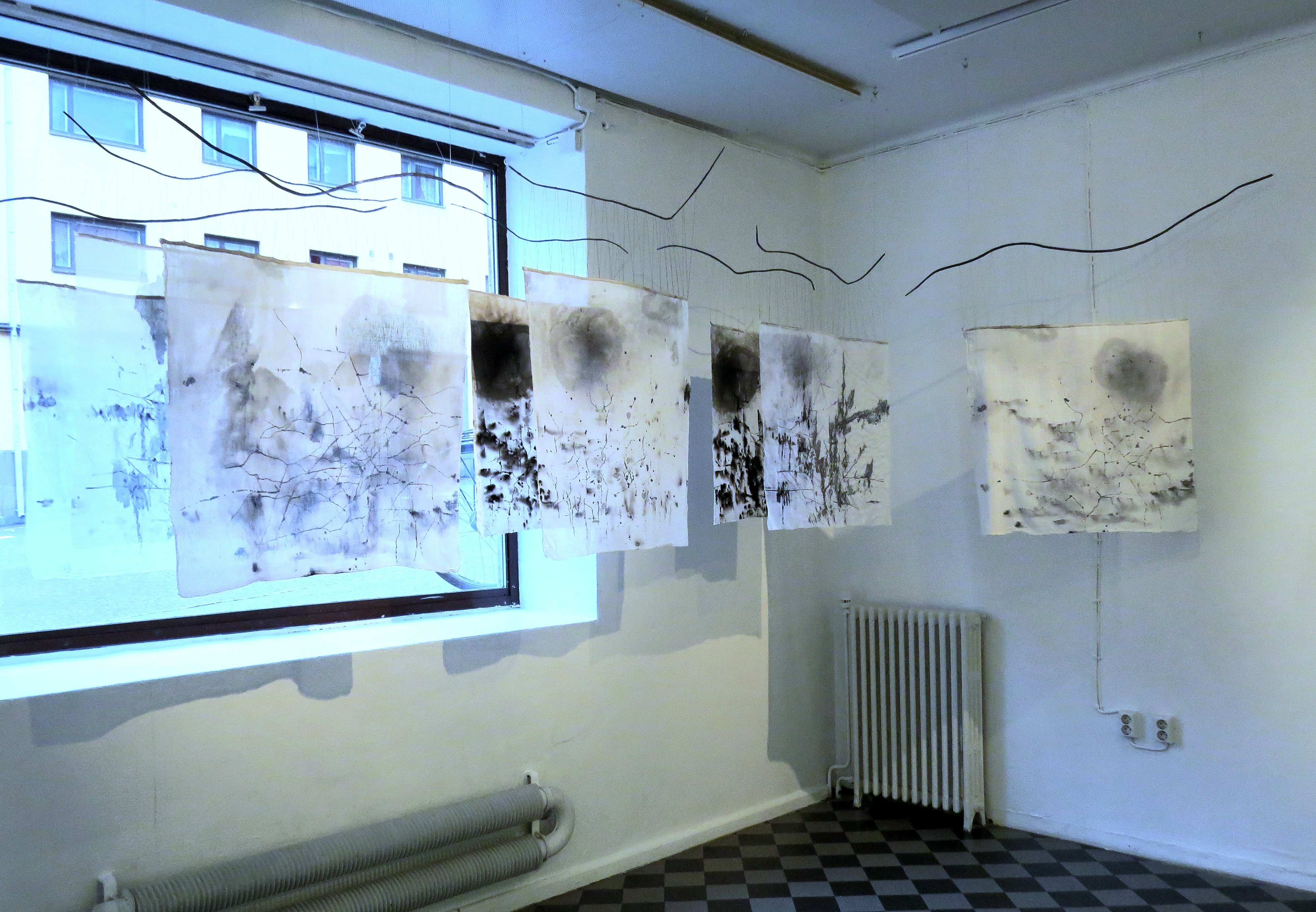 sekatekniikka, muste, öljyväri, hiili ja kaiverrus paperille ja vanerille