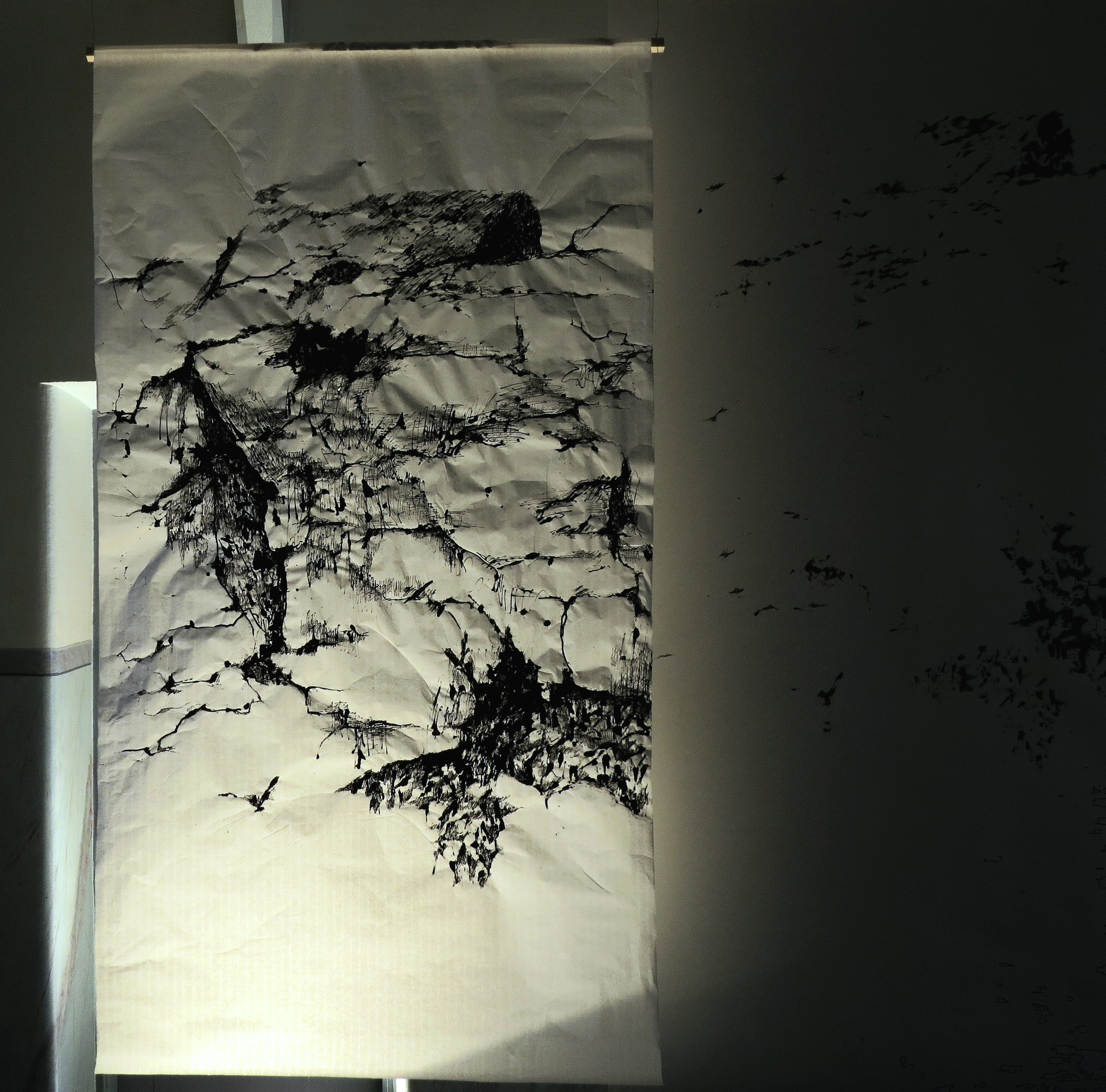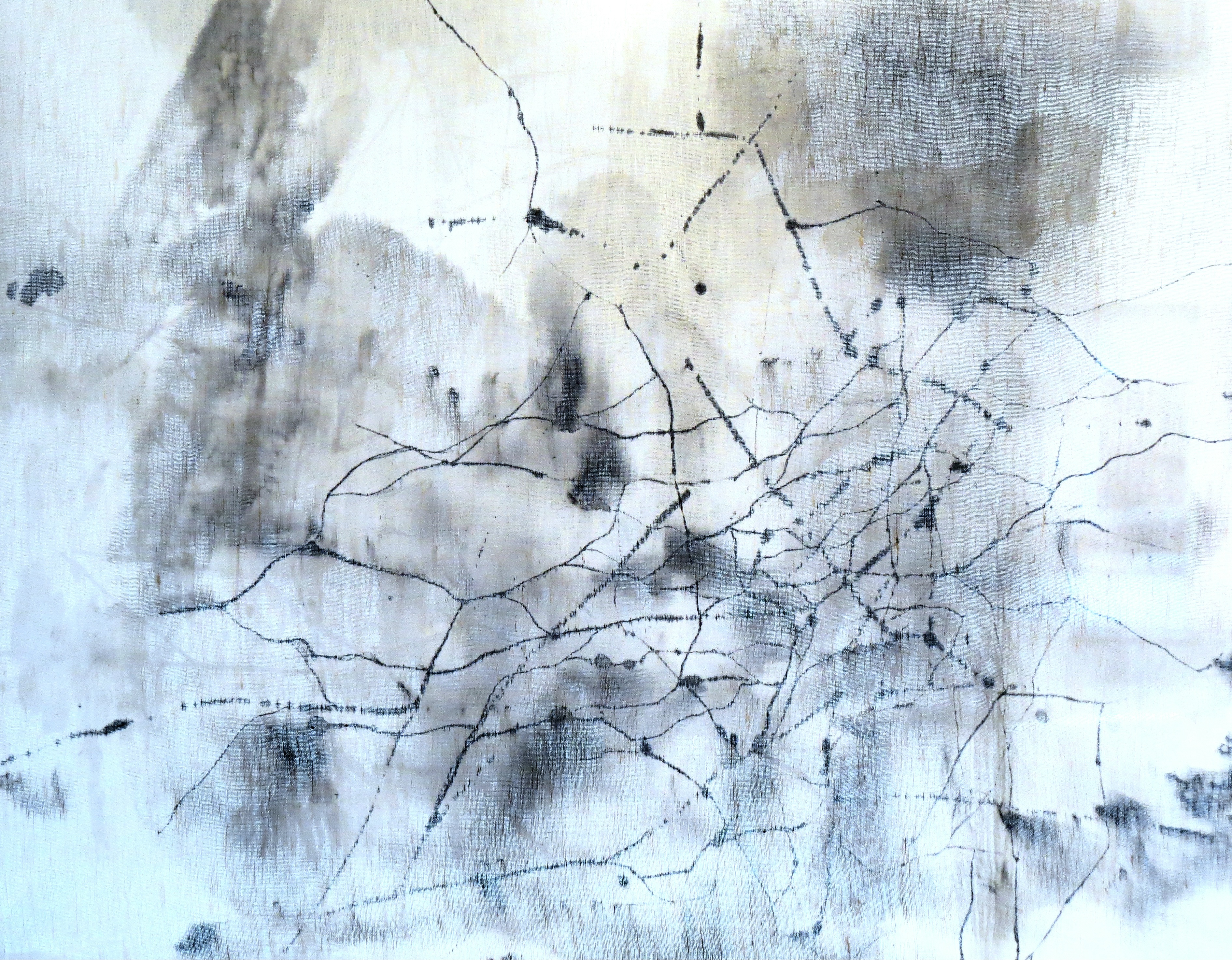kolmikerroksinen kuva, muste japaninpaperile, kuullotus öljyllä